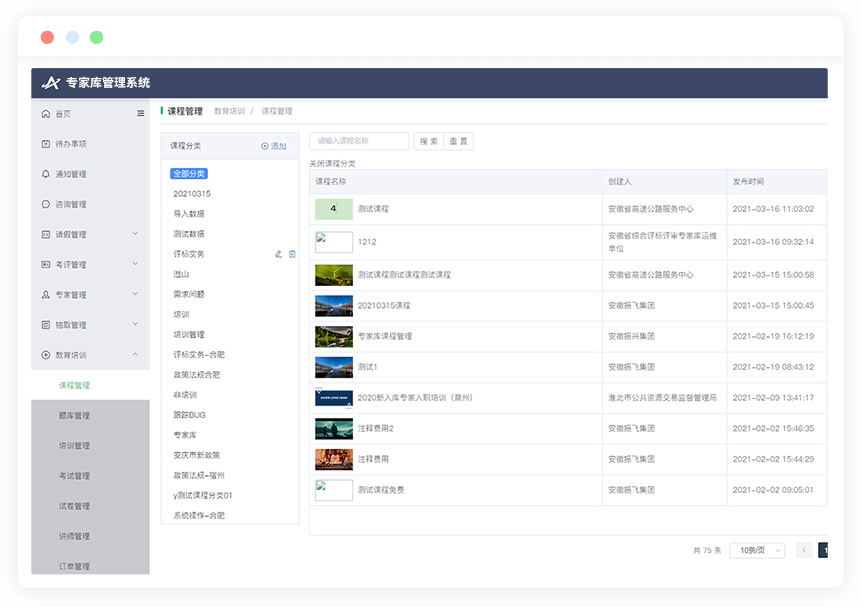 主要包括課程管理、講師管理、題庫管理、試卷管理、學員管理、培訓管理、專題班管理、直播管理、培訓證書、訂單管理、用戶反饋管理、知識庫管理等。